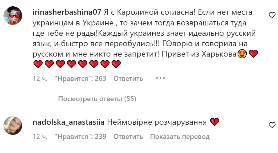 В комментариях читатели страницы Ани Лорак разделились: одни возмущаются, что песня на русском языке, а сама певица живет в России.