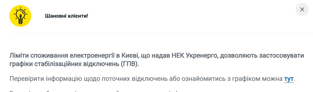 У Києві вже повернулися до стабілізаційних графіків сьогодні, за даними ДПЕК.