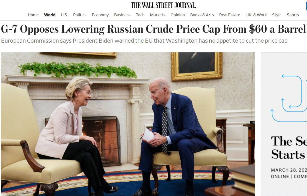 "Позиція "Великої сімки" може спровокувати нову напруженість у ЄС щодо схеми обмеження цін. Влада Польщі, Естонії та Литви напередодні закликала знизити стелю цін на нафту з РФ до 51,45 доларів, але цього зроблено не буде", – пише видання.
