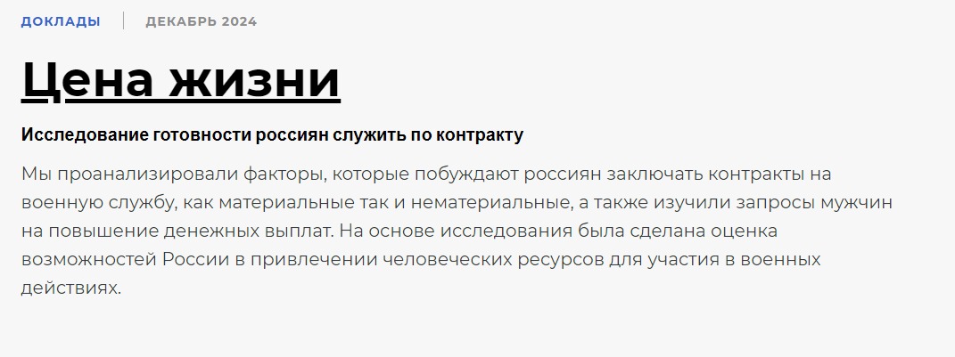 Влітку заступник голови Ради безпеки РФ Дмитро Медведєв говорив, що в середньому за добу контракт підписують тисяча осіб. Військові експерти вважають ці дані завищеними. Але навіть якщо взяти мінімальну оцінку кількості потенційних контрактників (мільйон людей) та темпи набору, названі Медведєвим, то російська армія матиме приплив добровольців ще як мінімум 2,5 роки, йдеться у доповіді.