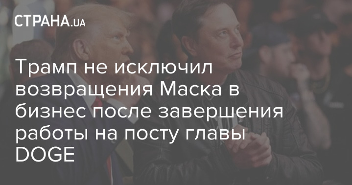 Президент США Дональд Трамп допустив повернення мільярдера Ілона Маска до бізнесу після закінчення терміну роботи на посаді голови Департаменту ефективності держуправління (DOGE).