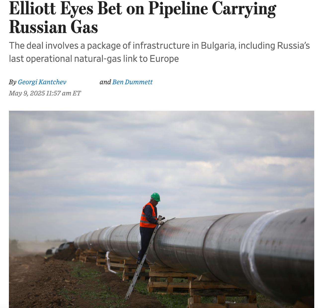 В іншій статті видання пише, що американці виявляють інтерес до газової транзитної інфраструктури, за якою рухається блакитне паливо Росії. Зокрема, інвестфонд Elliott Investment Management веде переговори щодо купівлі частки у трубопроводі "Турецький потік".