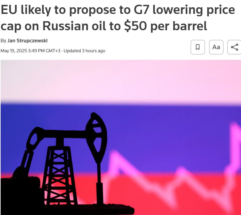 Євросоюз запропонує країнам G7 ("Велика сімка") знизити стелю цін на нафту з Росії з 60 доларів до 50 доларів за барель.