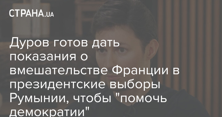 Дуров готовий дати свідчення про втручання Франції у президентські вибори Румунії, щоб "допомогти демократії"