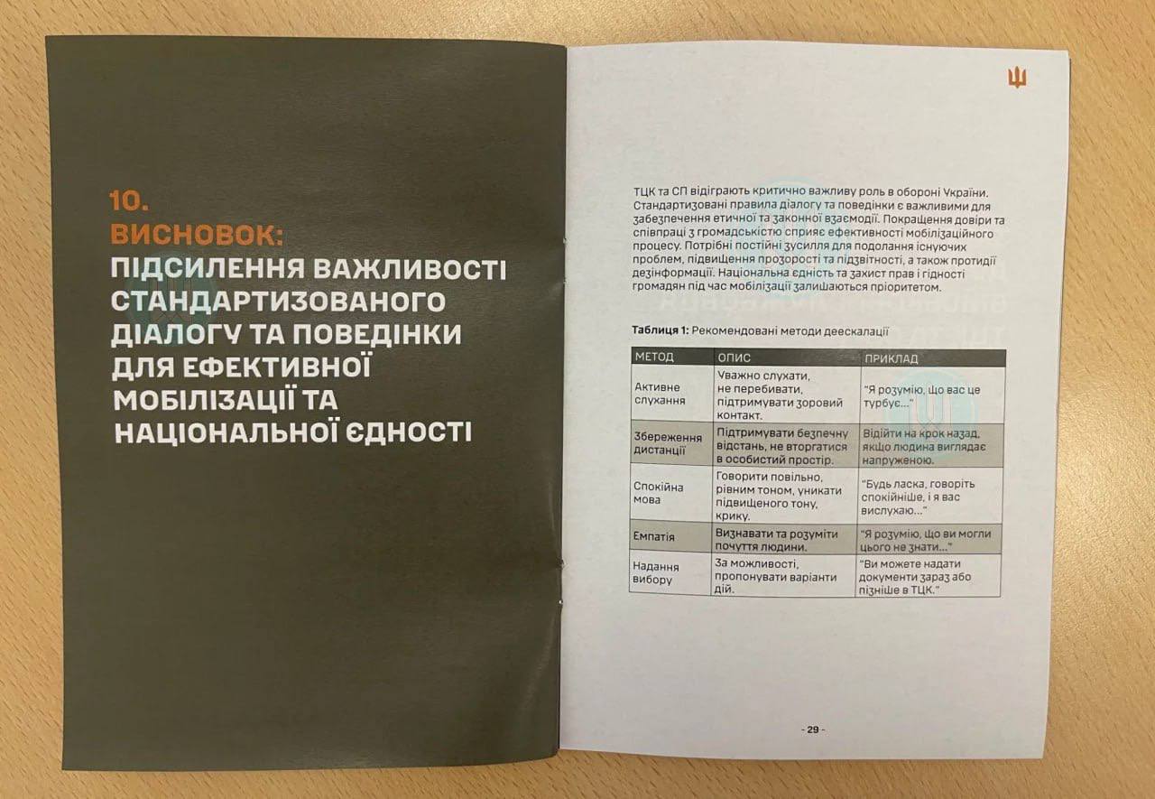У мережі з'явився зміст 50-сторінкового посібника для працівників ТЦК, в якому описано рекомендовану поведінку працівників при мобілізації цивільних.