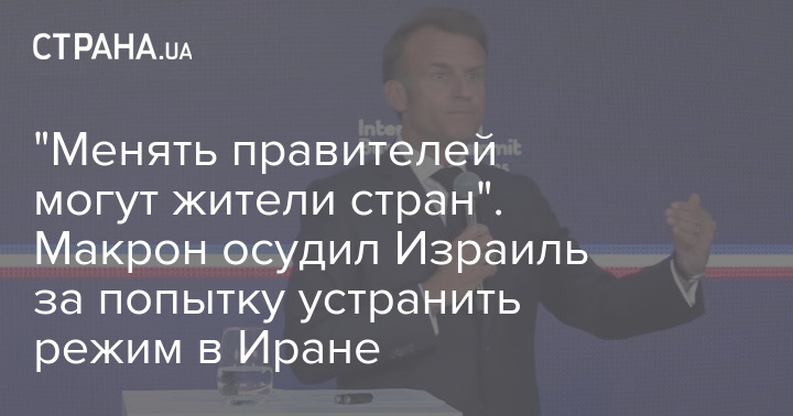 "Змінювати правителів можуть мешканці країн". Макрон засудив Ізраїль за спробу усунути режим в Ірані