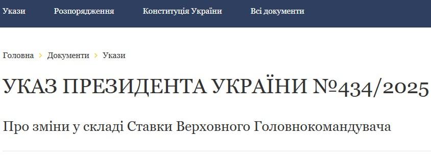 Президент України Володимир Зеленський змінив склад Ставки верховного головнокомандувача, ввівши до неї командувача об'єднаних сил ЗСУ, а також першого заступника Міністра оборони та командувача Сухопутних військ ЗСУ.