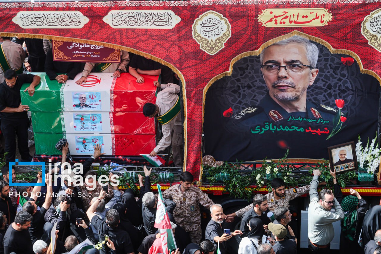 Труни з тілом верховного головнокомандувача Корпусу вартових ісламської революції (КСІР) Ірану Хоссейну Саламі, а також командувача ВПС КСІР генерала Аміра Алі Хаджізаде везли в центрі Тегерана.