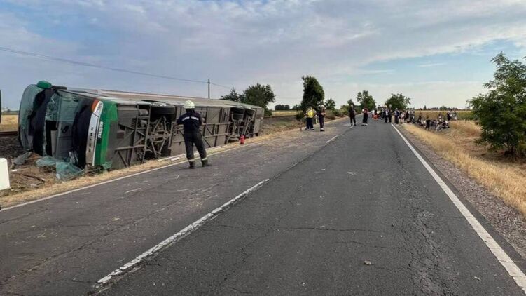 Автобус із невстановлених причин з'їхав у кювет і перекинувся на бік біля залізничного насипу. У салоні знаходилося 77 осіб — дорослі та діти.