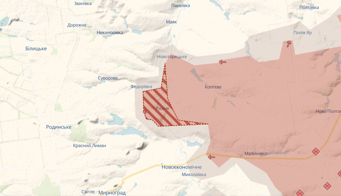 Раніше ми повідомляли, що російська армія захопила два села. Одна з них Зірка – на кордоні з Дніпропетровською областю, а також Білогорівка у Луганській. Також великий наступ РФ зафіксовано і на північний схід від Покровська і Мирнограда (по лінії Новоторецьке - Новоекономічне). Там ворог, ймовірно, робить спроби вийти на північ від Покровська.
