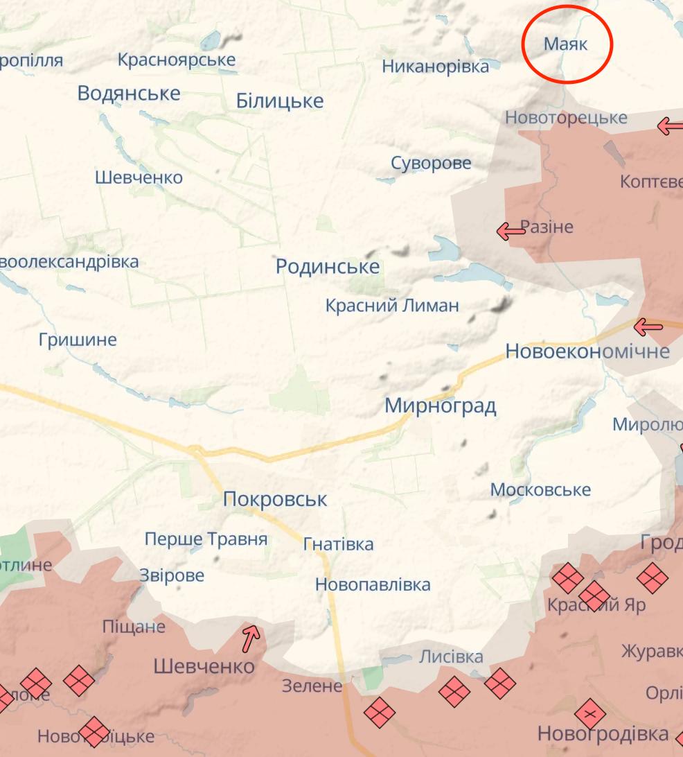 Маяк знаходиться на північ від Мирнограда, де РФ намагається взяти в кишеню Покровськ.