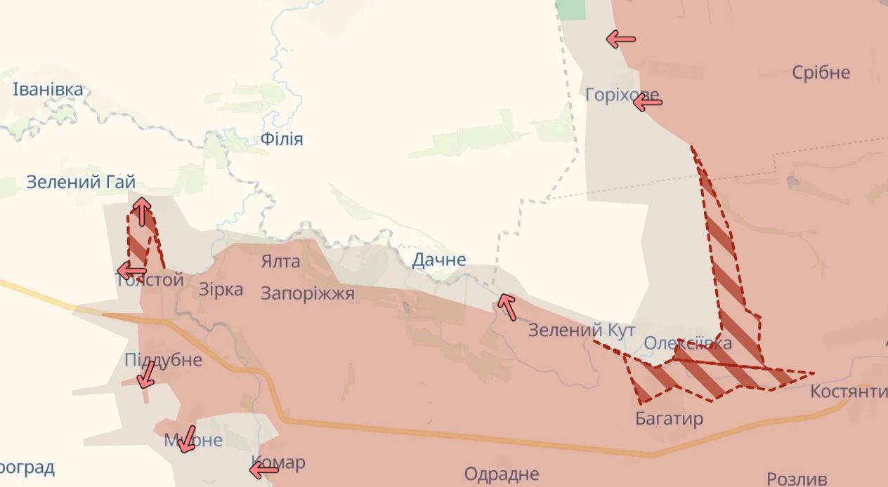 На Новопавлівському напрямку росіяни захопили село Богатир, а також просунулися в Олексіївці Ближче до кордонів Дніпропетровської області – у Новохатському та Толстому.