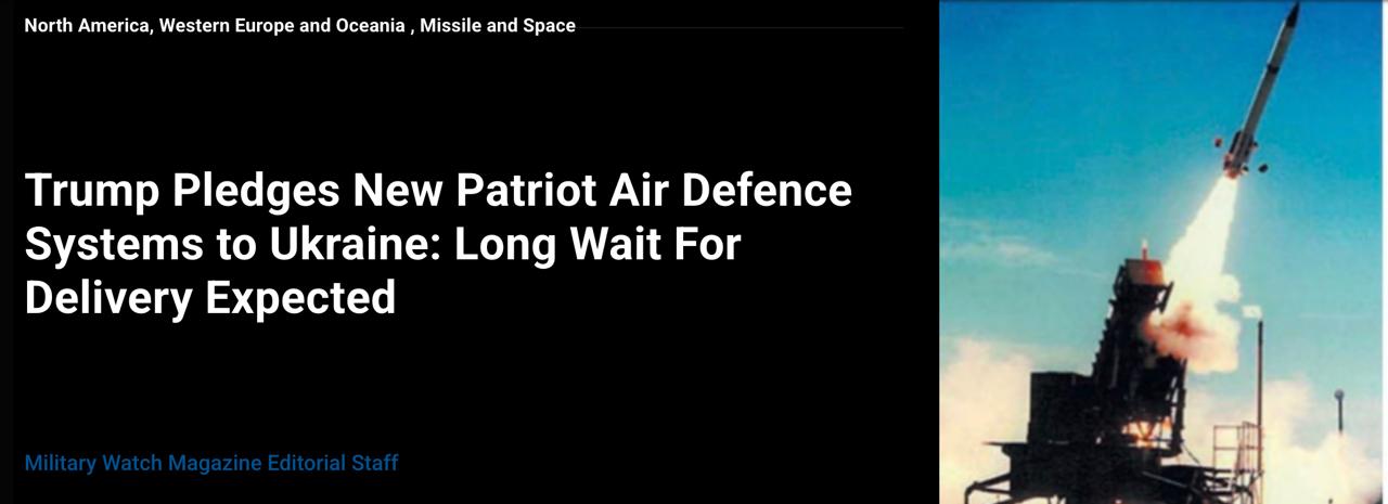 Хоча обіцянка поставити системи Patriot знизить тиск на адміністрацію Трампа, "гостра нестача систем у Сполучених Штатах призведе до того, що в найближчому майбутньому поставки не відбудуться".