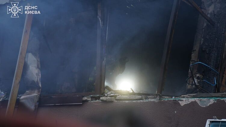 Наслідки російської атаки у Києві. Фото: ДСНС