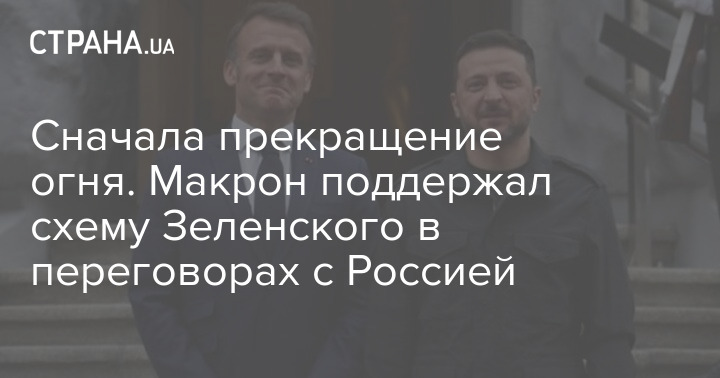 За підсумками дзвону із Зеленським президент Франції заявив, що наполягає на схемі, за якою Росія погоджується на припинення вогню, а потім розпочинаються переговори.