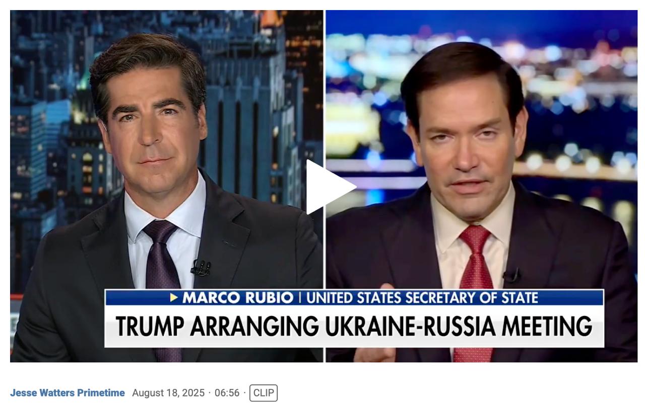 "Президент (Трамп - Ред.) запропонував, щоб Зеленський і Путін зустрілися. Зараз ми працюємо над тим, щоб організувати для них таку зустріч десь, і це, звичайно, було б безпрецедентно. А якщо все пройде добре, то, сподіваюся, наступна зустріч буде вже зустріччю президентів Путіна, Трампа та Зеленського, де ми розраховуємо фіналізувати угоду. Це обговорювалося сьогодні як дійти до цієї точки. Але вже сам факт, що Путін каже: "Добре, я зустрінуся із Зеленським" - це велика справа. Я не стверджую, що вони вийдуть із тієї кімнати найкращими друзями. Я не стверджую, що вони вийдуть звідти із мирною угодою. Але вже сам факт, що Путін каже: "Добре, я зустрінуся із Зеленським" - це велика справа. Я думаю, що сам факт того, що люди починають розмовляти один з одним, це важливо. Цього не відбувалося три з половиною роки", – заявив Рубіо в ефірі Fox News.