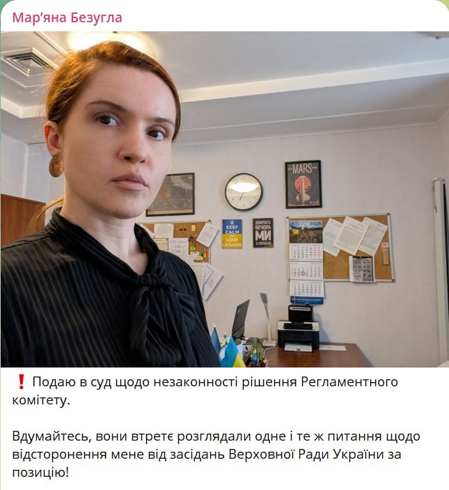 Мар'яна Безугла. Фото: https://t.me/marybezuhla