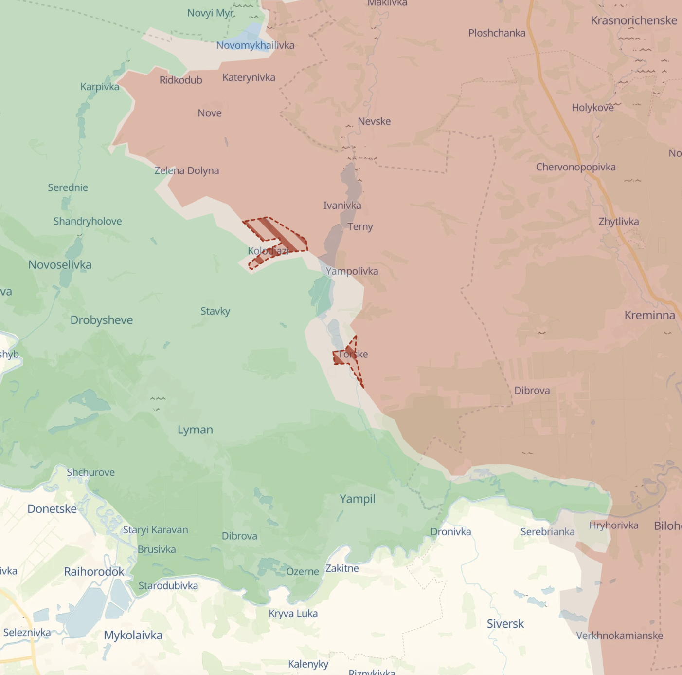 Також росіяни просунулися на Лиманському напрямку - у Зарічного та Колодязів, повідомляє Deep State.