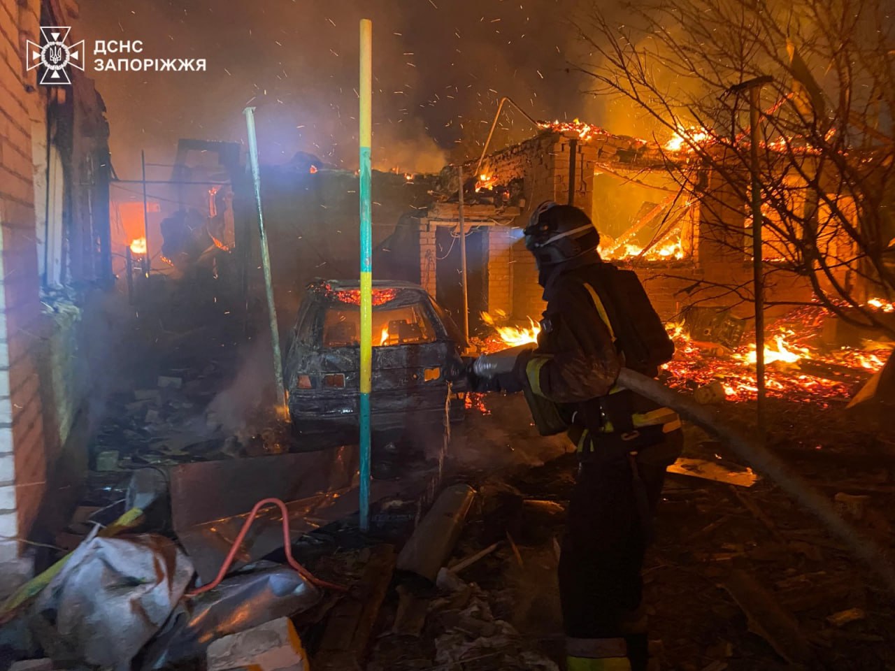 У Запоріжжі зруйновано приватні будинки, пошкоджено багатоповерхівки, будівлі промислових підприємств. Щонайменше 12 ударів було, на місцях влучень виникли пожежі.