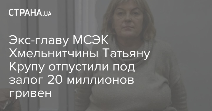 Вищий антикорупційний суд змінив запобіжний захід колишньому голові медико-соціальної експертної комісії Хмельницької області Тетяні Крупі, підозрюваній у корупції. Утримання під вартою їй замінили заставою 20 млн грн.
