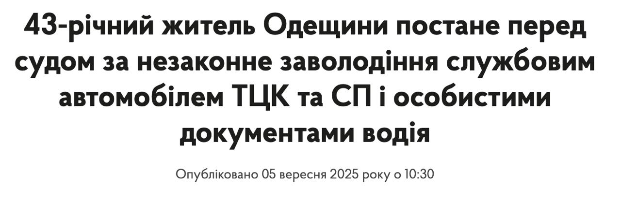 "43-річний громадянин сів у службовий автомобіль і, незважаючи на водія, який стояв поряд і мав везти пасажира на обстеження у ВЛК, раптово перестрибнув на переднє сидіння і поїхав. Машину зловмисник кинув на околиці населеного пункту, а сам пішов додому, прихопившись із салону" повідомленні правоохоронців.