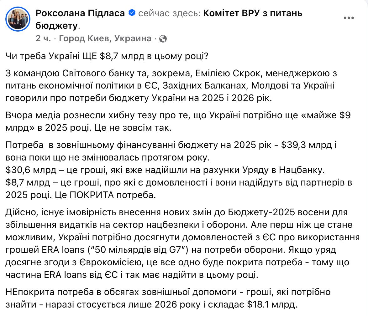 Учора міністр фінансів повідомив, що у 2025 році було залучено понад 30,6 мільярда доларів зовнішнього фінансування, тоді як потреба України на поточний рік становить 39,3 мільярда доларів.