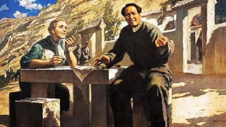 1946-го до Китаю приїхала ліва американська журналістка та письменниця Ганна Луїза Стронг, яка взяла інтерв'ю у Мао. Воно вийшло в журналі Amerasia під заголовком "Погляд на світ з печери Яньань" і викликало великий резонанс, оскільки на той час у країні відновилася громадянська війна між націоналістами Чан Кайші, яких підтримували американці, та комуністами Мао Цзедуна.