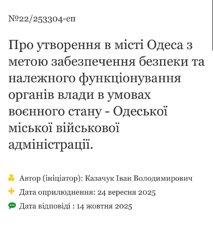 Володимир Зеленський закликав голову Одеської обласної державної адміністрації Олега Кіпера та головнокомандувача ЗСУ Олександра Сирського оцінити необхідність створення військової адміністрації Одеси, яка керуватиме містом замість мера Геннадія Труханова.