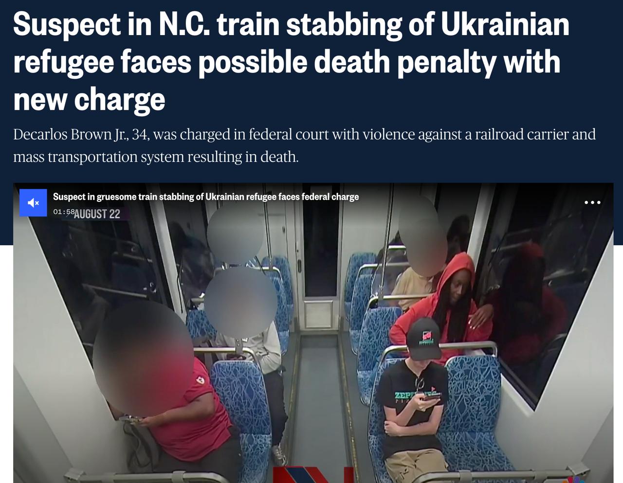Згідно з федеральним обвинувальним висновком, 22 серпня Браун "навмисне вбив" Заруцьку під час нападу на потяг.