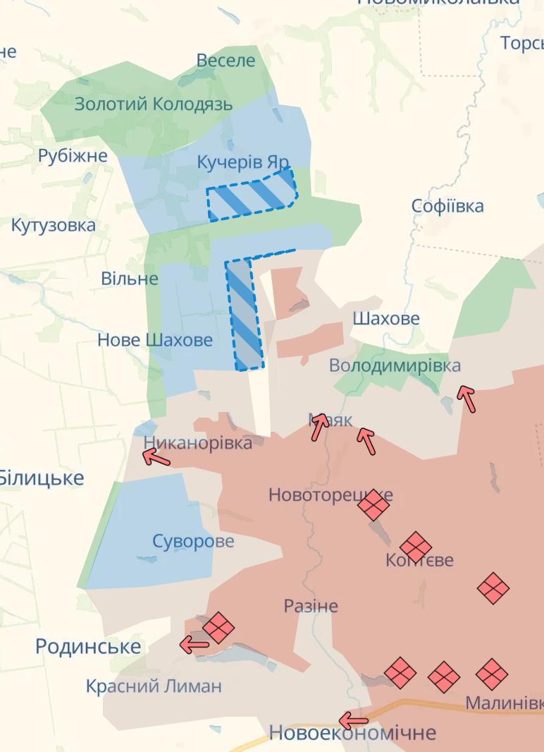 12:40 ЗСУ знову просунулися на Добропільському виступі, повідомляє Deep State. Таким чином, на сьогоднішній день його майже повністю вдалося ліквідувати за винятком позицій росіян у районі Шахове.