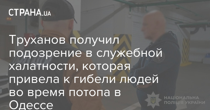Прокуратура офіційно підтвердила, що колишній мер Одеси Геннадій Труханов отримав підозру у службовій недбалості, яка призвела до загибелі дев'яти осіб під час нещодавнього потопу у місті.