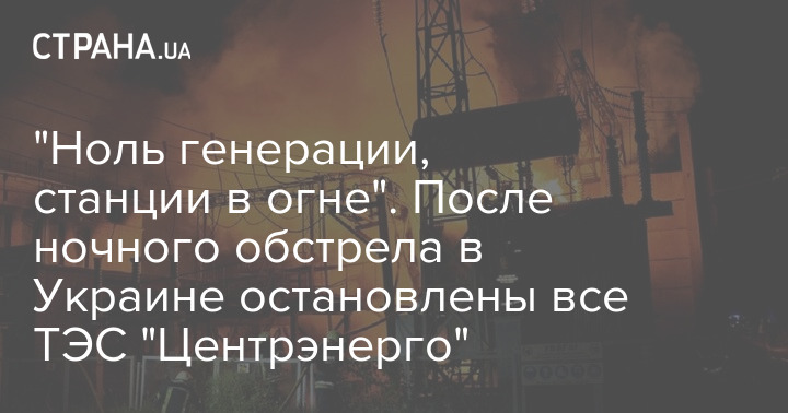Усі ТЕС української державної компанії "Центренерго" зупинено після нічного обстрілу.