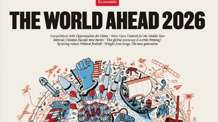 Британський журнал The Economist опублікував традиційну обкладинку-ребус до щорічної програми з прогнозами та аналітикою "Світ напередодні 2026 року" (The World Ahead 2026).