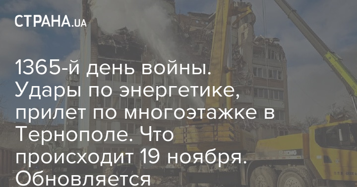 У середу, 19 листопада, в Україні триває 1365-й день війни з Росією.