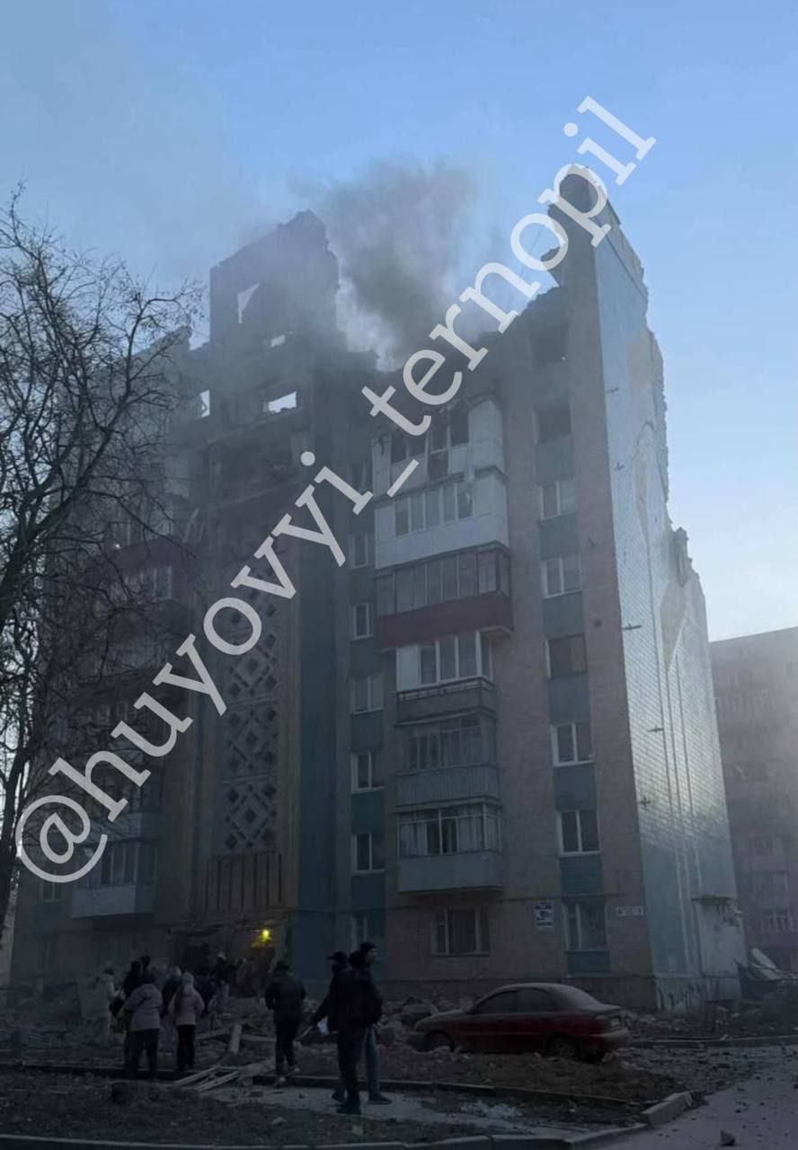 7.44 Наслідки прильотів у Тернополі. Повідомляють про постраждалу багатоповерхівку.