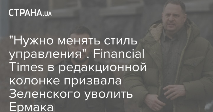 "Потрібно змінювати стиль управління". Financial Times у редакційній колонці закликала Зеленського звільнити Єрмака