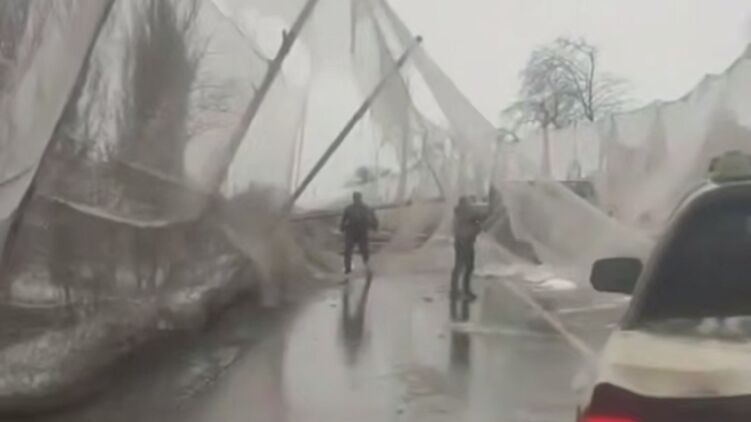 Антидронові мережі обвалилися на проїжджу частину. Скріншот відео