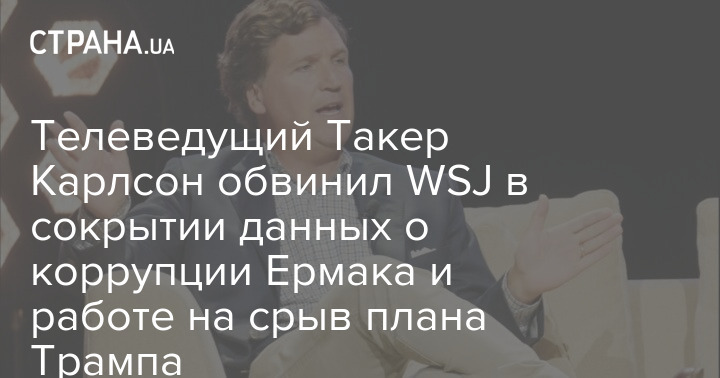 Американський телеведучий Такер Карлсон звинуватив газету The Wall Street Journal у прихованні інформації про корупцію глави Офісу Президента України Андрія Єрмака та в роботі на зрив мирного плану президента США Дональда Трампа.