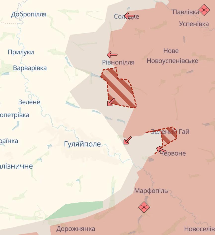 Армія РФ знову просунулась біля Гуляйполя, повідомляє Deep State. Українські військові повідомляють, що на східні околиці селища почали заходити російські ДРН.