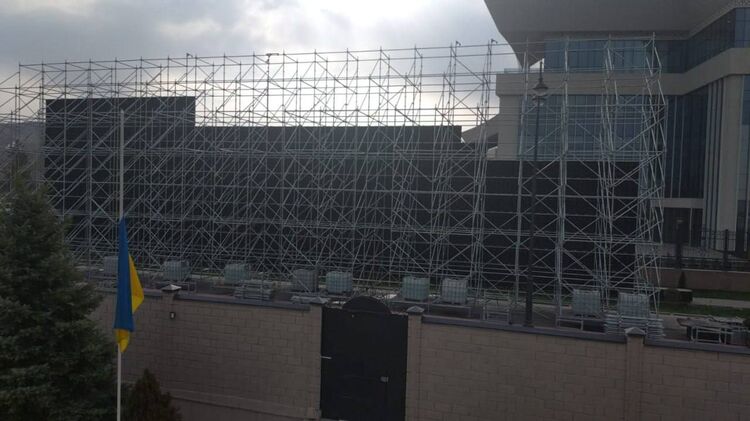 Посольство України у Киргизії закрили екраном. Фото: Телеграм