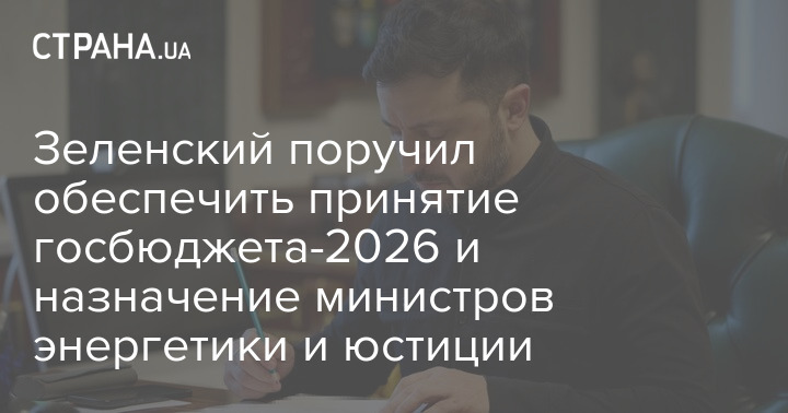 Президент України Володимир Зеленський доручив Верховній Раді та Кабінету міністрів забезпечити ухвалення державного бюджету на наступний рік та призначення міністрів енергетики та юстиції.