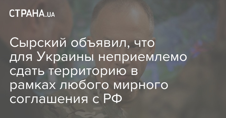 Головнокомандувач Збройних сил України Олександр Сирський заявив, що для України неприйнятно здати територію у рамках будь-якої мирної угоди з Росією.