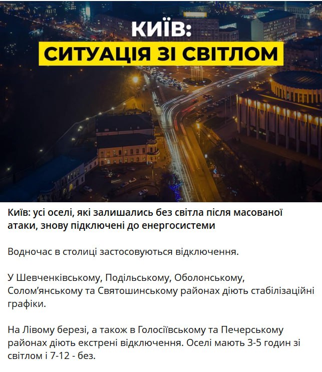 13.46 Екстрені відключення світла запроваджуються по всьому Києву, повідомляє гендиректор Yasno.