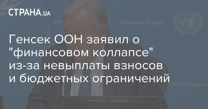 Генеральний секретар Організації Об'єднаних Націй (ООН) Антоніу Гутерріш попередив про "неминучий фінансовий колапс" для його організації через невиплату внесків та бюджетних обмежень.