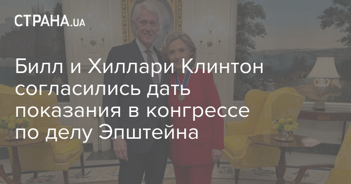 Колишній президент США Білл Клінтон та його дружина Хілларі, яка обіймала посаду держсекретаря, погодилися дати свідчення комітету з нагляду палати представників, який з ініціативи республіканців розслідує зв'язки засудженого за педофілію фінансиста Джеффрі Епштейна з впливовими постатями.
