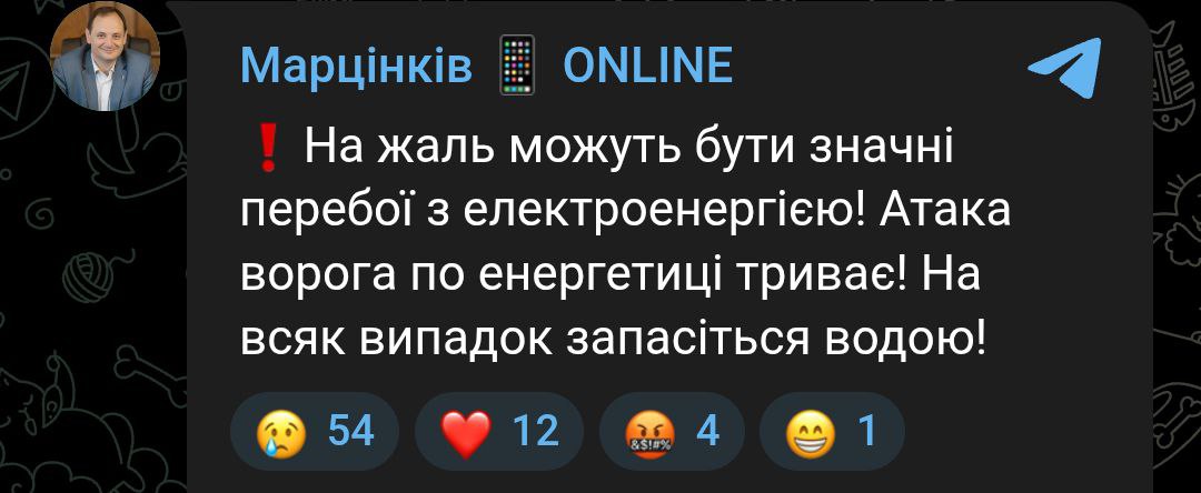 Міністр енергетики Денис Шмигаль заявив, що метою сьогоднішнього удару стали підстанції та повітряні лінії електропередачі напругою 750 та 330 кВ – основа енергосистеми України.