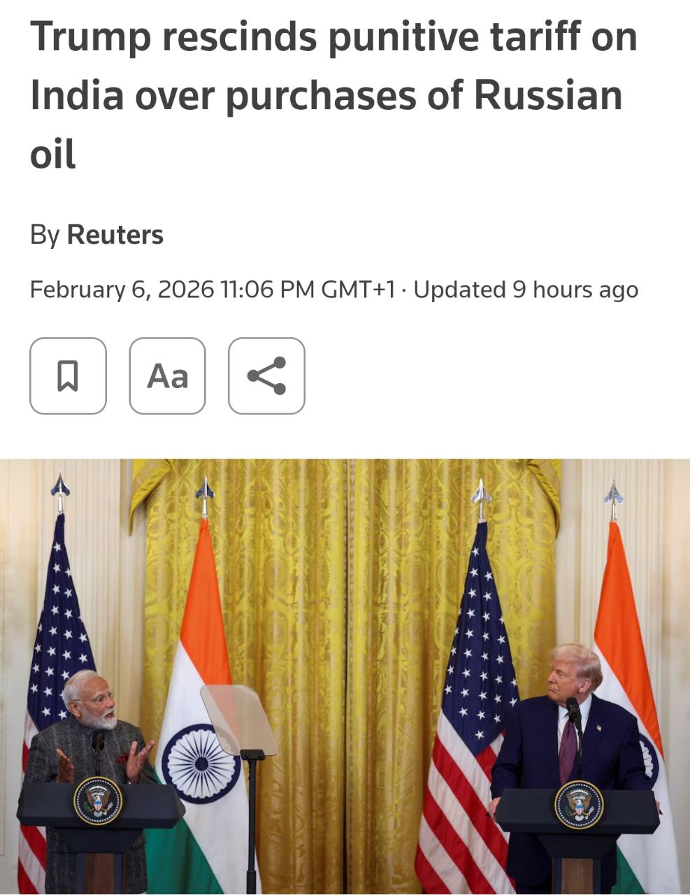 За даними агентства, Індія погодилася припинити прямий та непрямий імпорт нафти з Росії та збільшити закупівлі американських енергоносіїв.