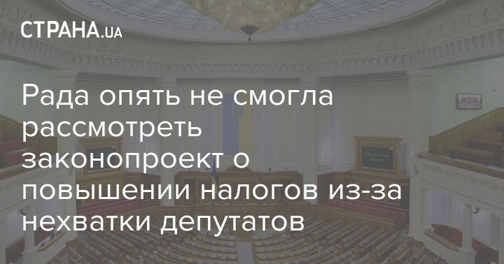 Верховна Рада вкотре не спромоглася розглянути проект закону про підвищення податків, необхідний для отримання Україною подальшого кредитування від Міжнародного валютного фонду. Причиною зриву розгляду документа стала нестача депутатів.
