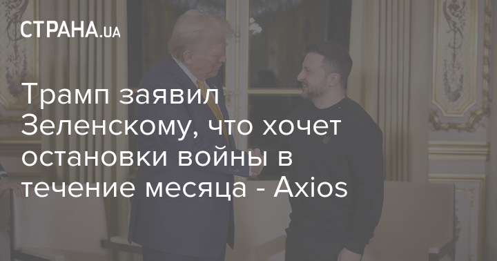 Трамп заявив Зеленському, що хоче зупинки війни протягом місяця - Axios