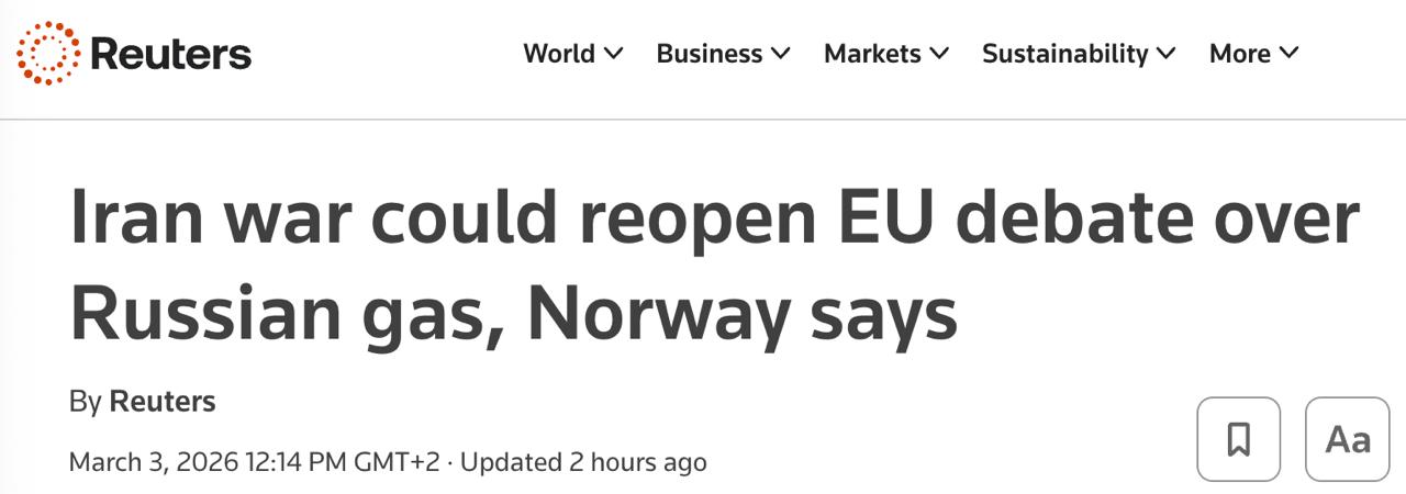 У Європейському Союзі можуть відновитися розмови про необхідність закуповувати російський газ через війну на Близькому Сході та пов'язані з нею перебої постачання енергоносіїв.